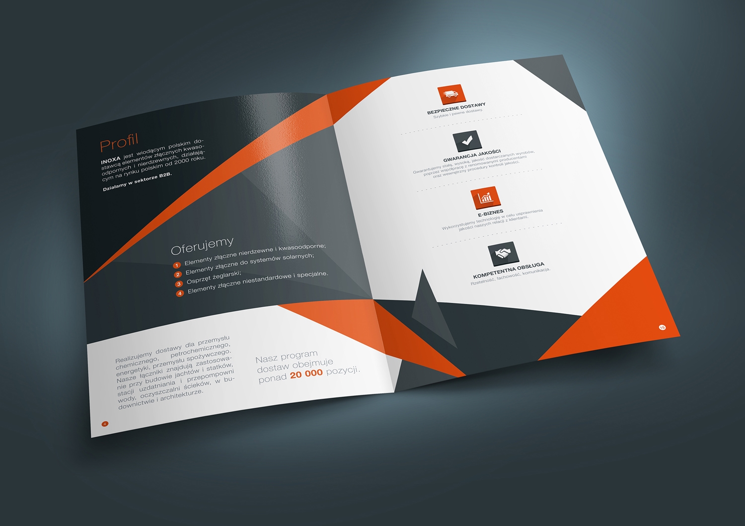 Projekt i druk folderów reklamowych dla firmy z branży przemysłowej, Jaworzno