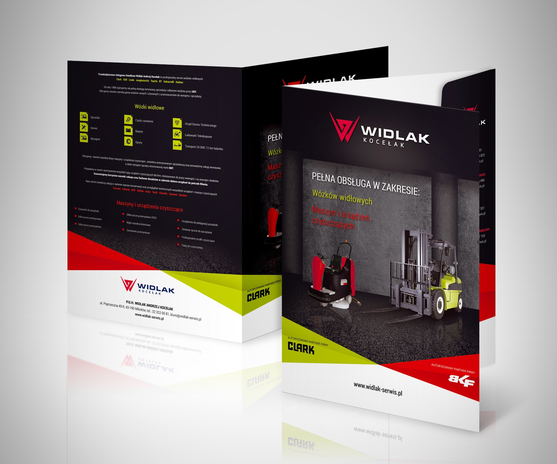 Projekt i druk teczki reklamowej dla serwisu wózków widłowych, Mikołów