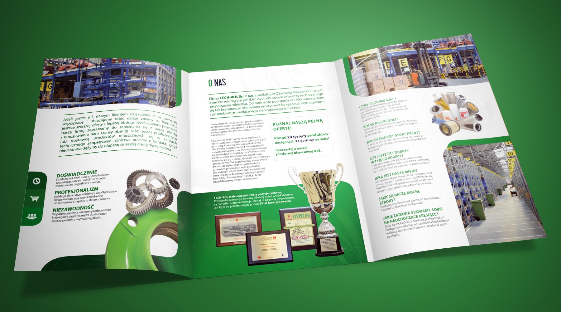 Projekt i druk broszury składanej 3xA4 dla firmy z branży rolniczej, Ożarów Mazowiecki