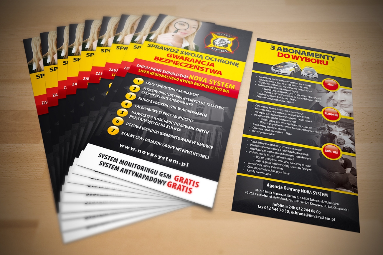 Projekt i druk ulotki DL dla agencji ochrony, Katowice