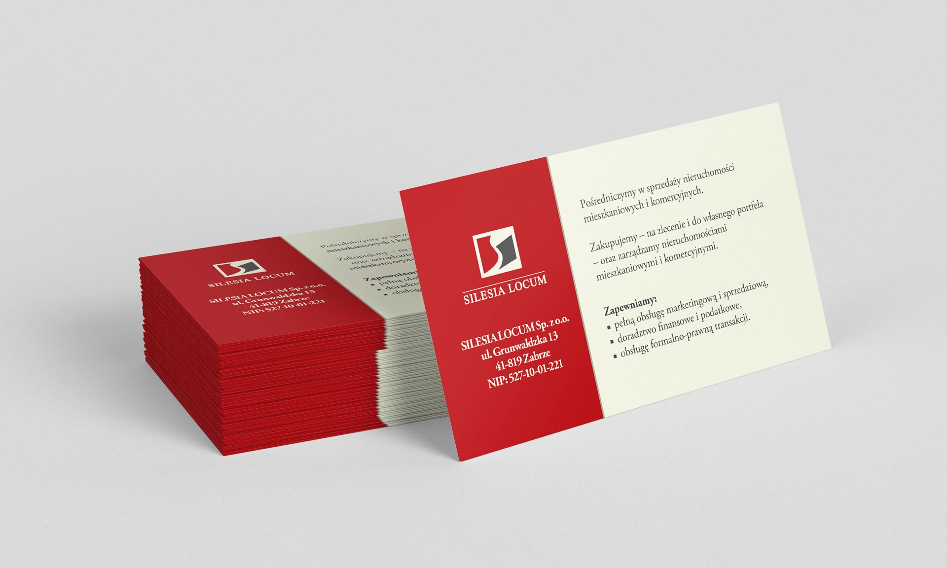 Projekt i druk wizytówek dla firmy z branży nieruchomości, Zabrze