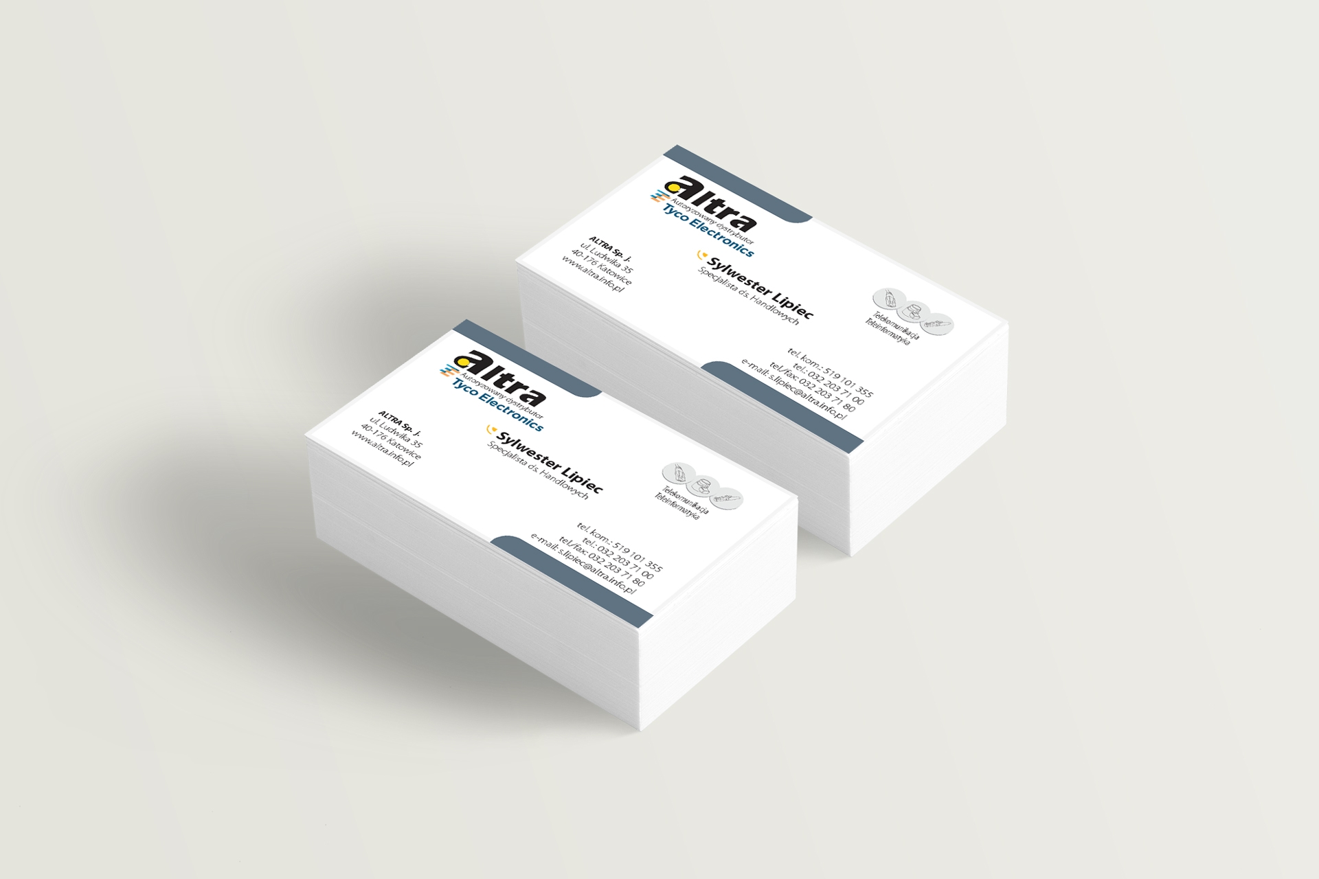 Projekt wizytówek i papieru firmowego dla firmy z branży materiałów teletechnicznych, Katowice