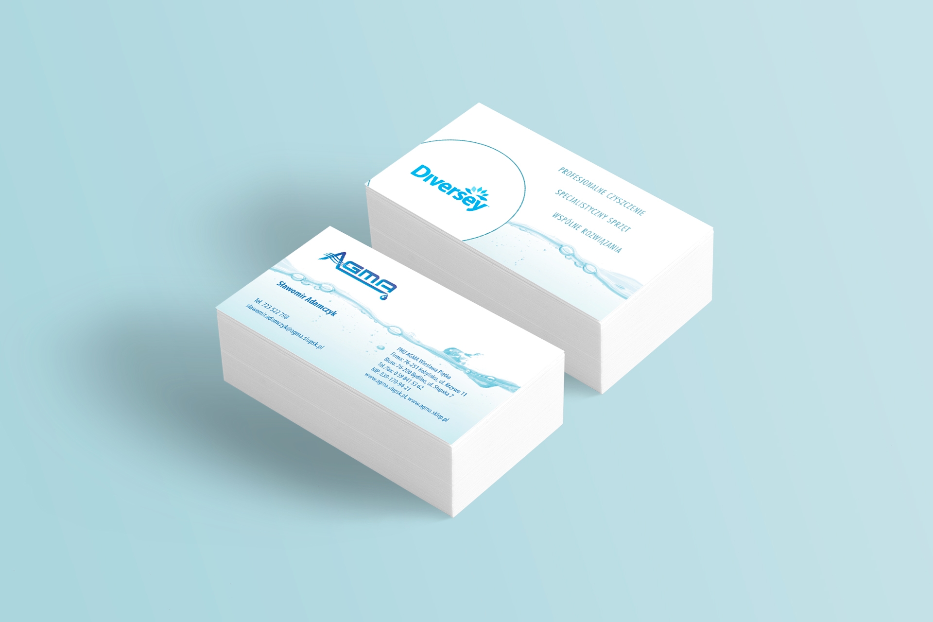 Projekt wizytówek i papieru firmowego dla firmy z branży czystości, Słupsk