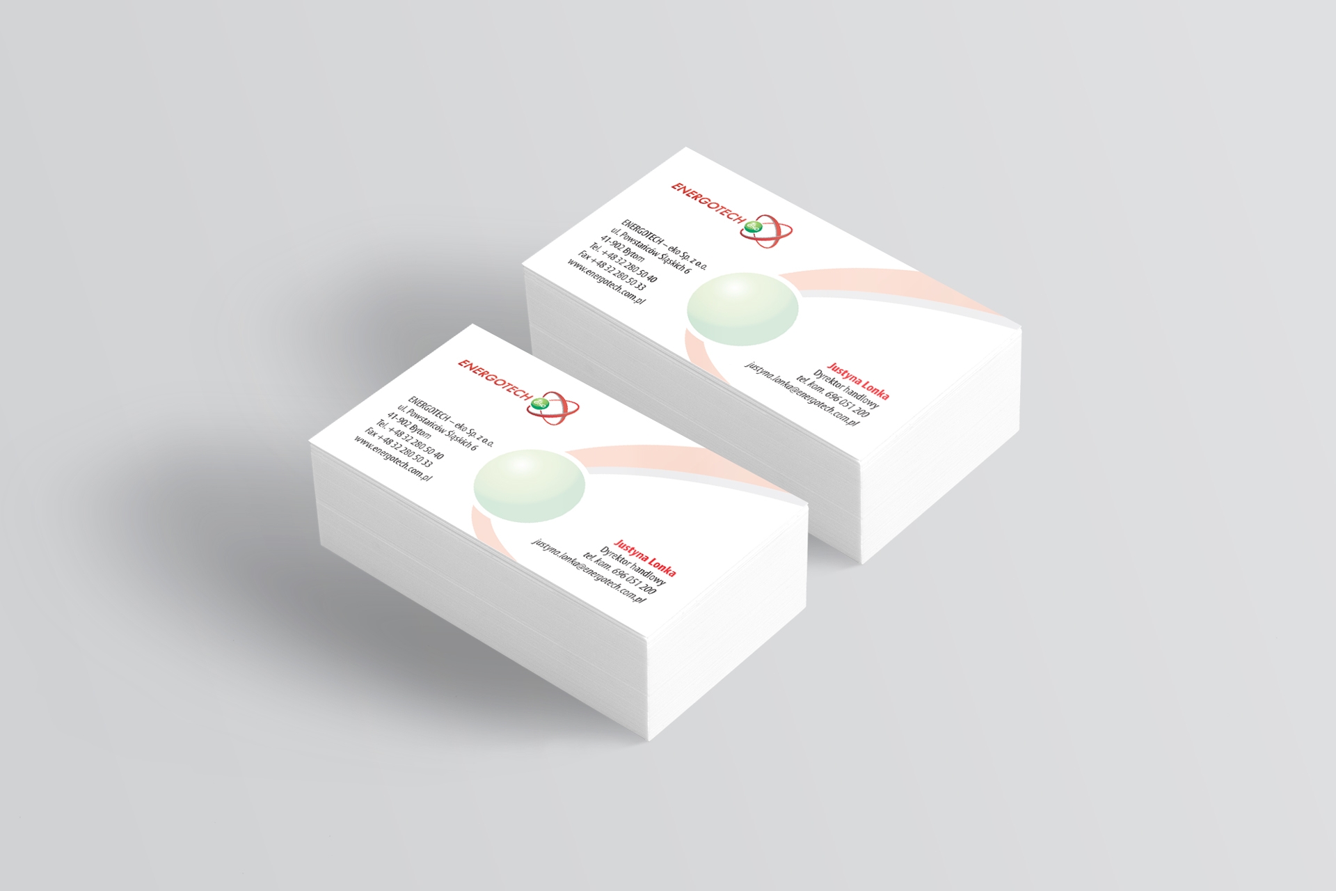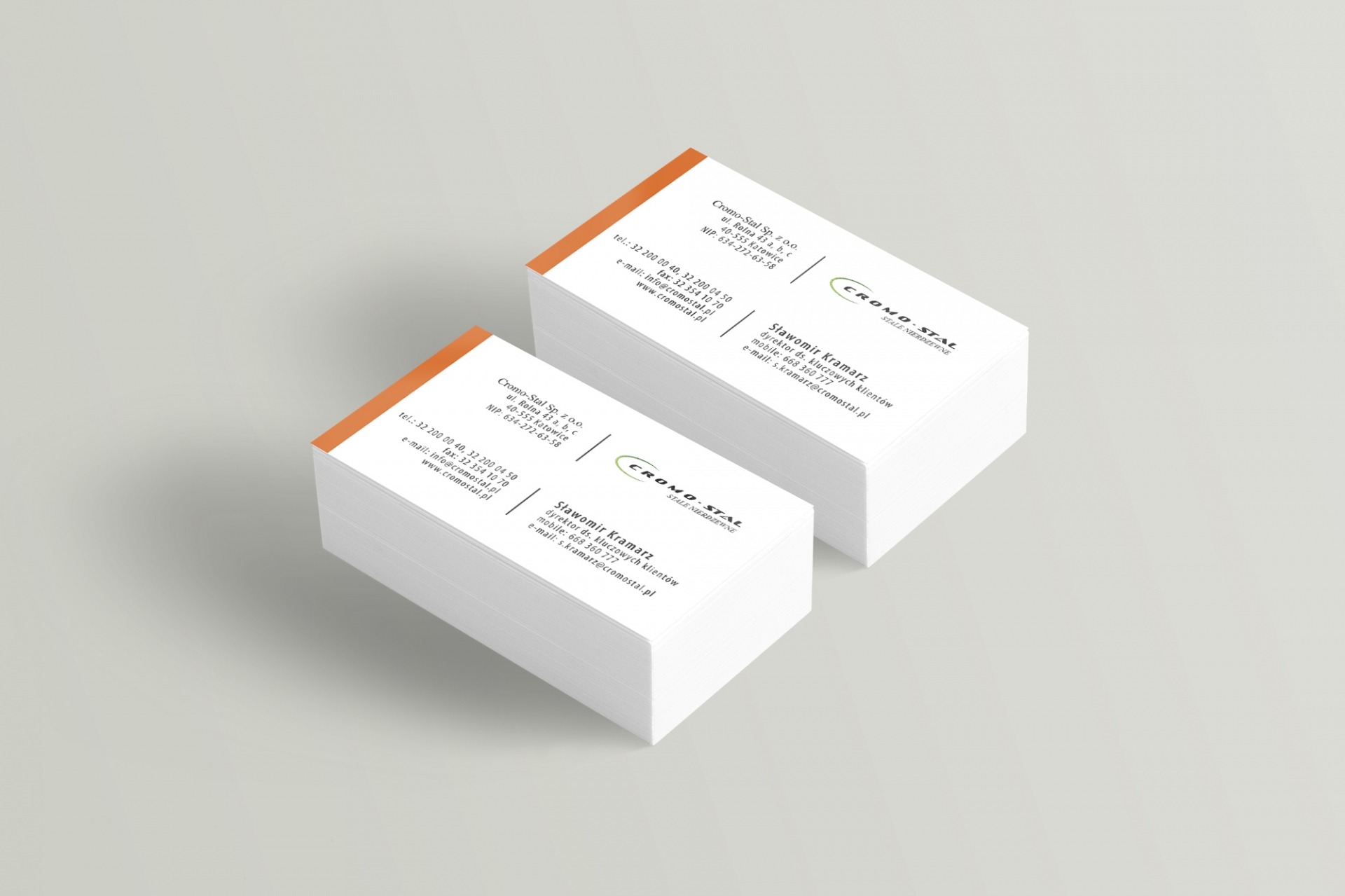 Projekt wizytówek i papieru firmowego dla firmy z branży przemysłowej, Bytom