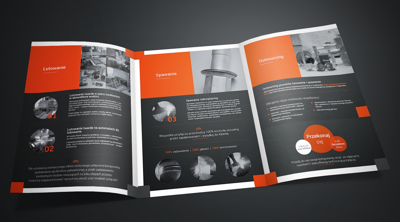 Projekt i druk folderów reklamowych dla firmy z branży przemysłowej, Słupca