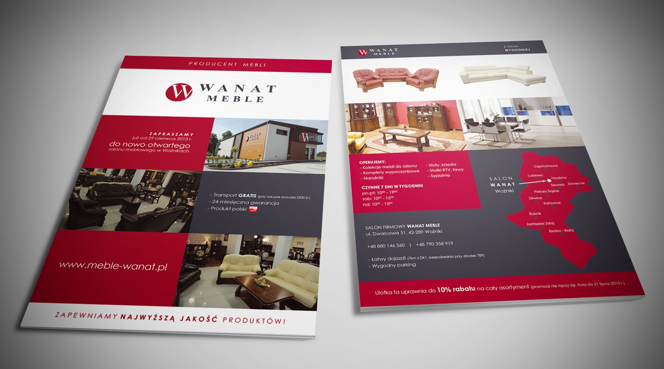 Projekt i druk ulotki A4 dla producenta mebli, Woźniki