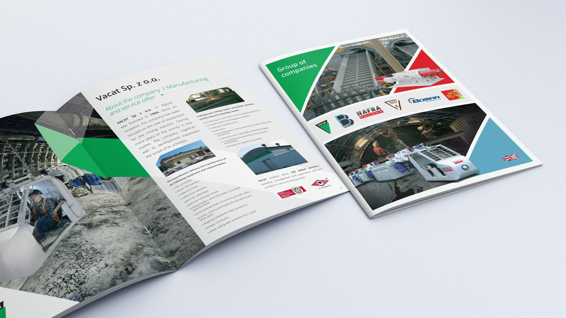 Projekt folderu A4 dla producenta maszyn i urządzeń górniczych, Rybnik
