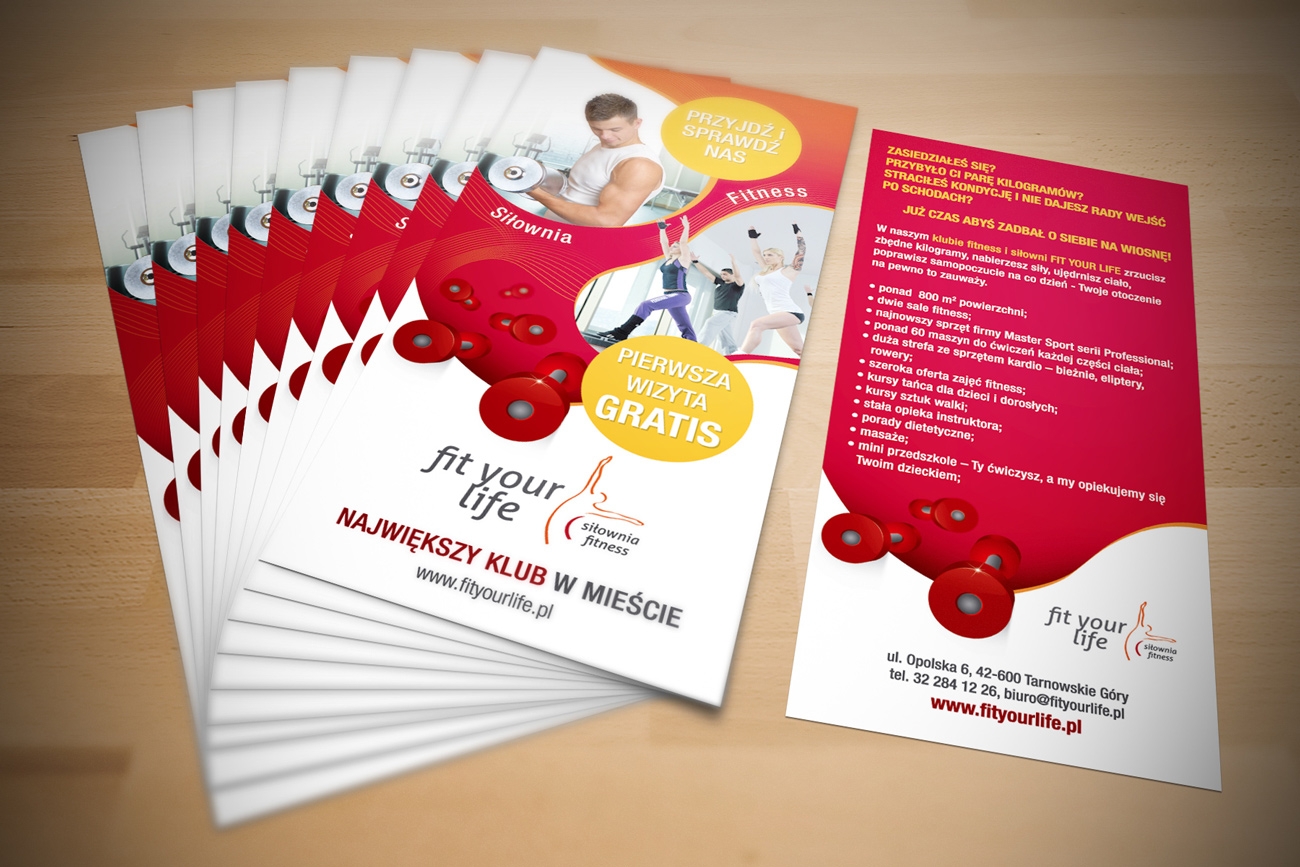 Projekt i druk ulotki DL dla siłowni i klubu fitness, Tarnowskie Góry