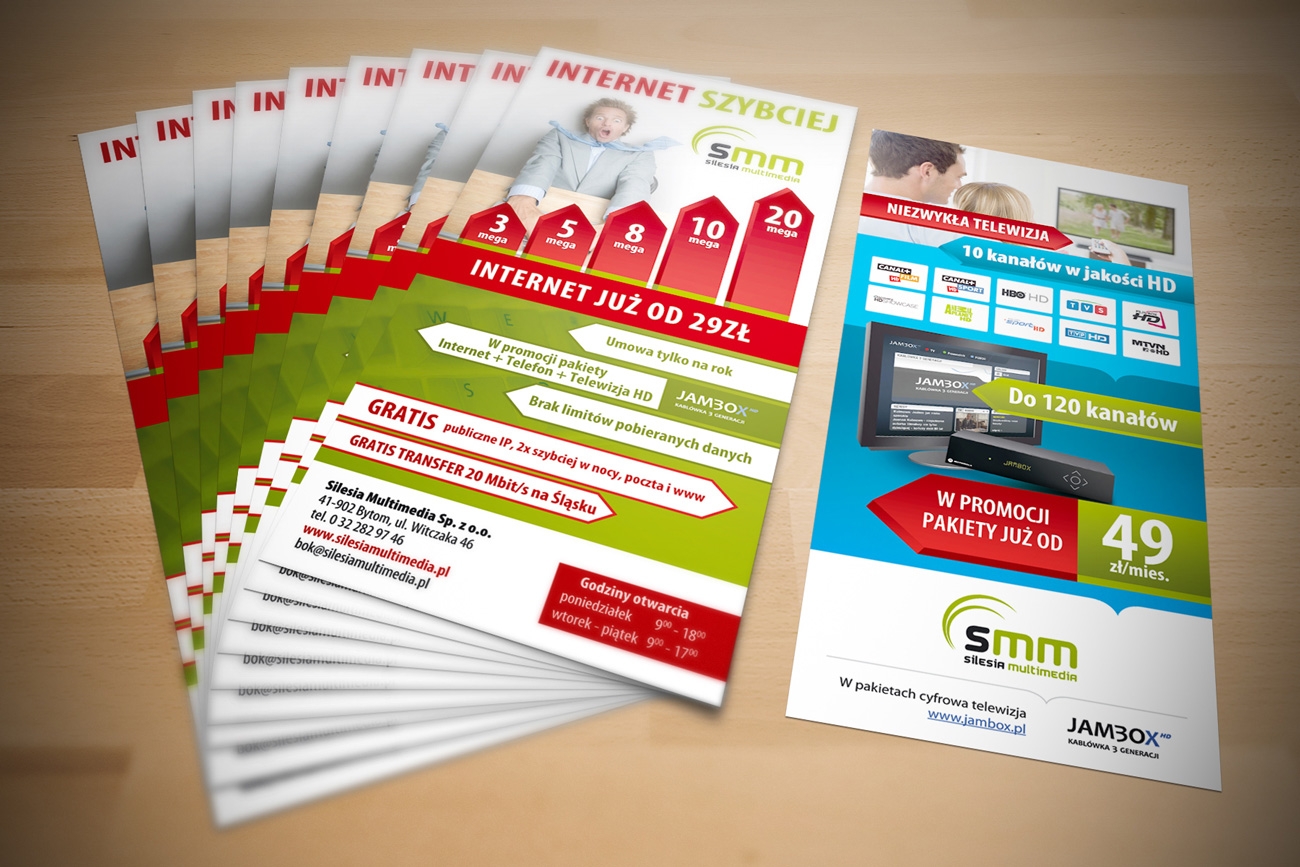 Projekt i druk ulotki DL dla dostawcy internetu, Bytom