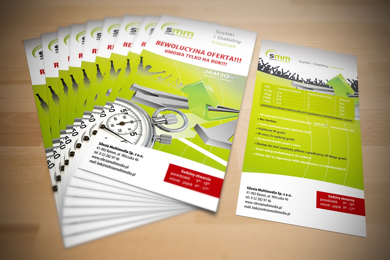 Projekt i druk ulotki dla dostawcy internetu, Bytom