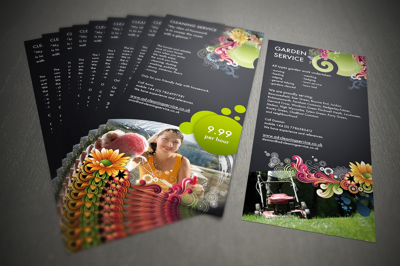 Projekt i druk ulotki dla firmy oferującej usługi pomocy domowej, Slough, England