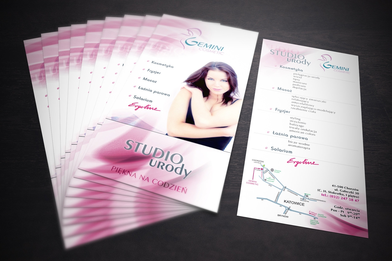 Projekt i druk ulotki DL dla salonu kosmetycznego, Katowice