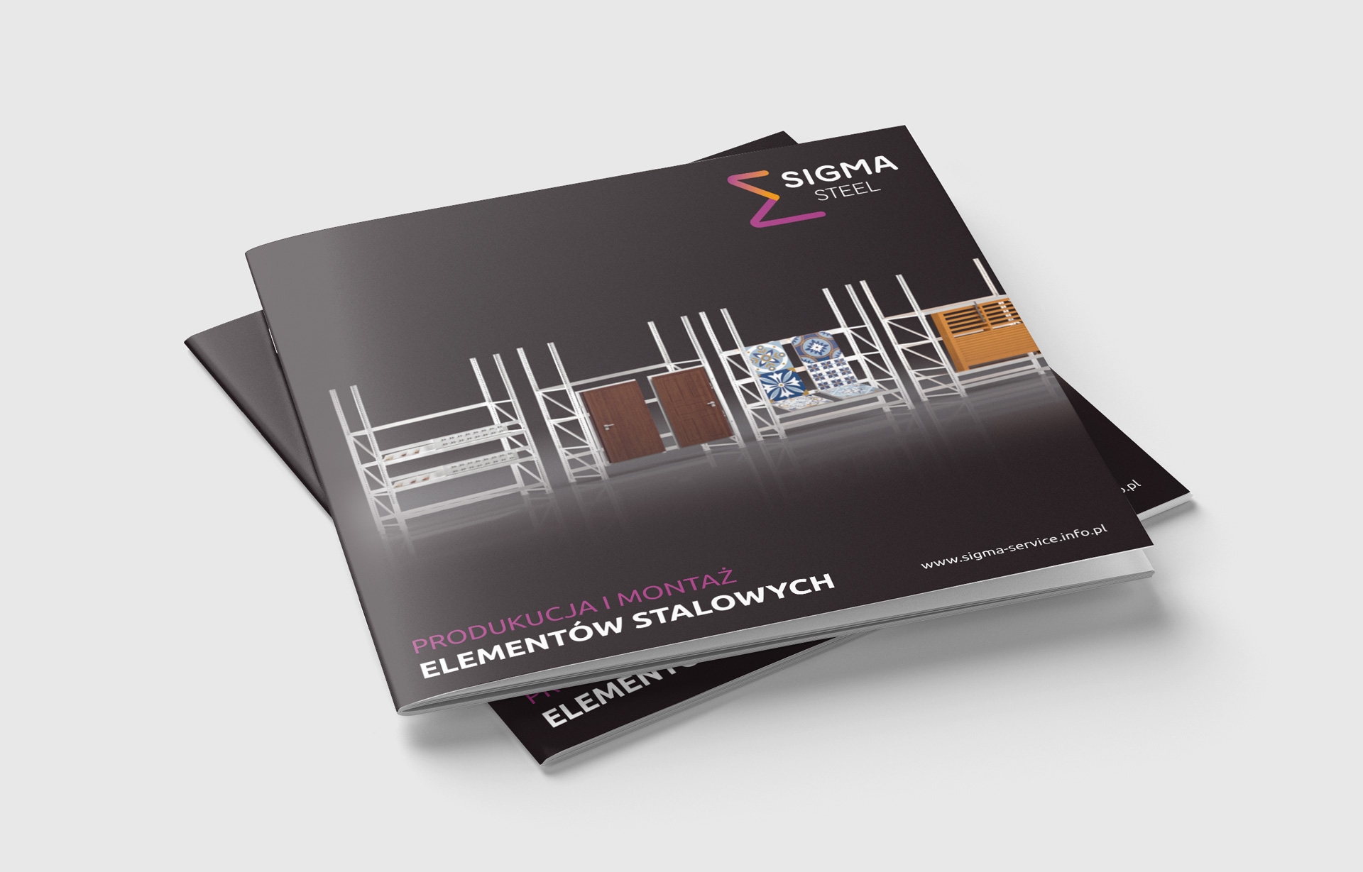 Projekt folderu 21x21 cm dla producenta elementów stalowych, Lubin
