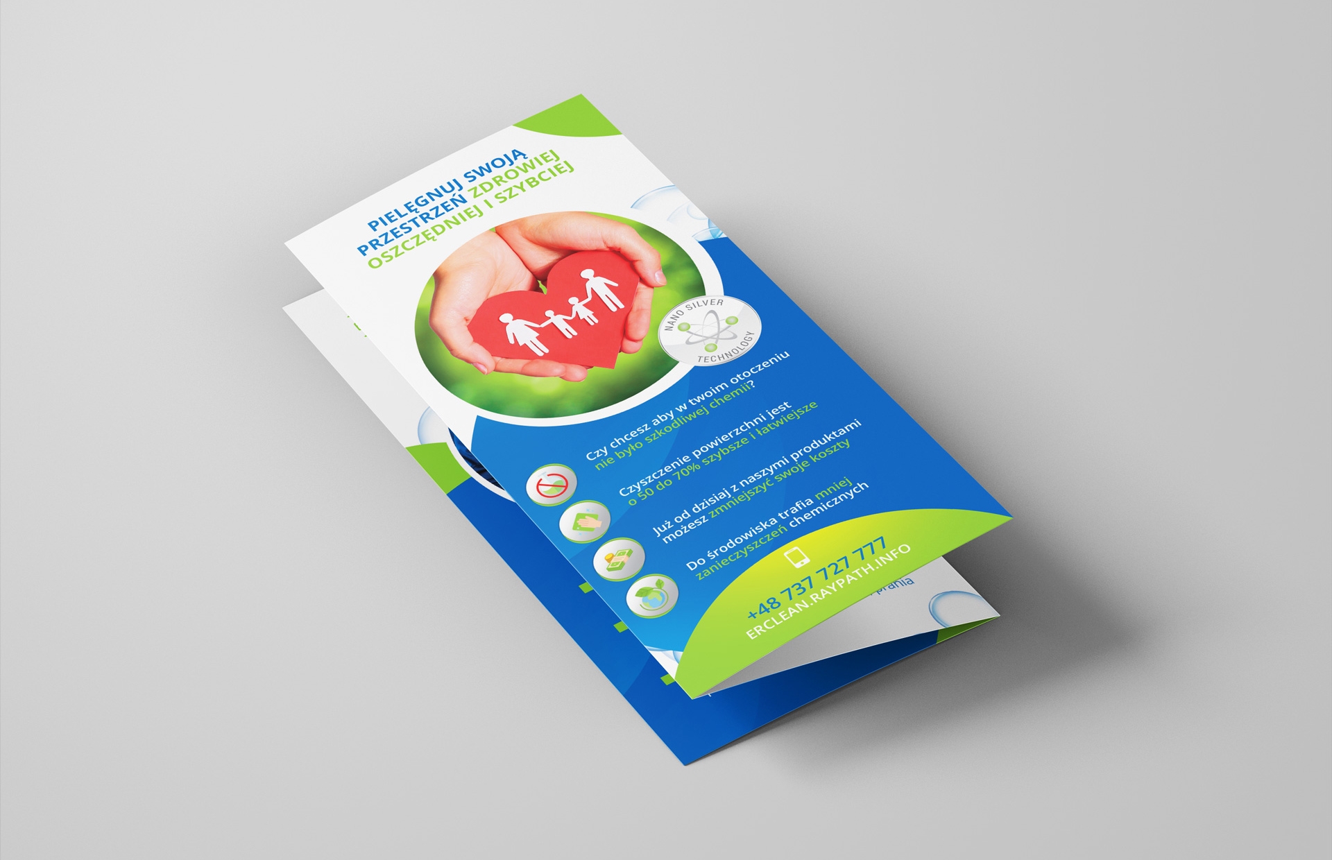 Projekt ulotki składanej 3X DL dla producenta kosmetków do pielęgnacji, Kraków