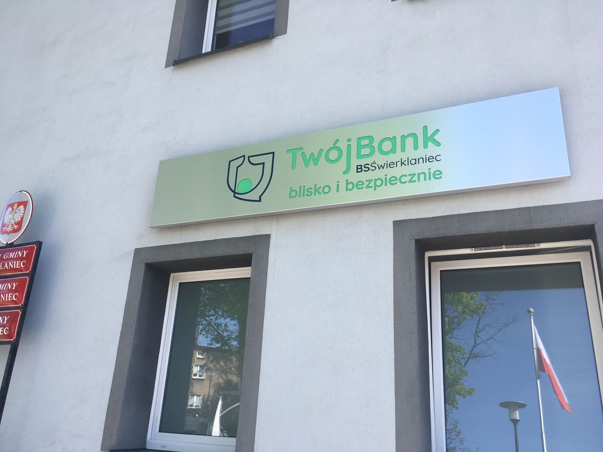 Bank Spółdzielczy w Świerklańcu - tablica z giętego dibondu z dystansem