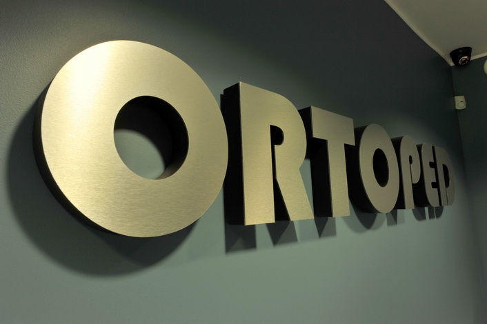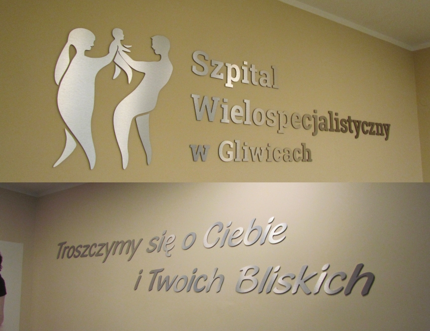 Litery płaskie z dibondu (aluminium szczotkowane) dla Szpitala (produkcja i montaż)