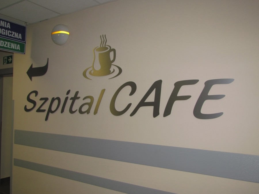 Litery płaskie z pleksi dla szpitalnej kawiarni (produkcja i montaż)