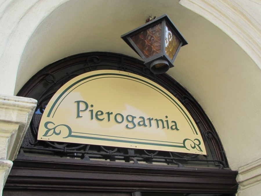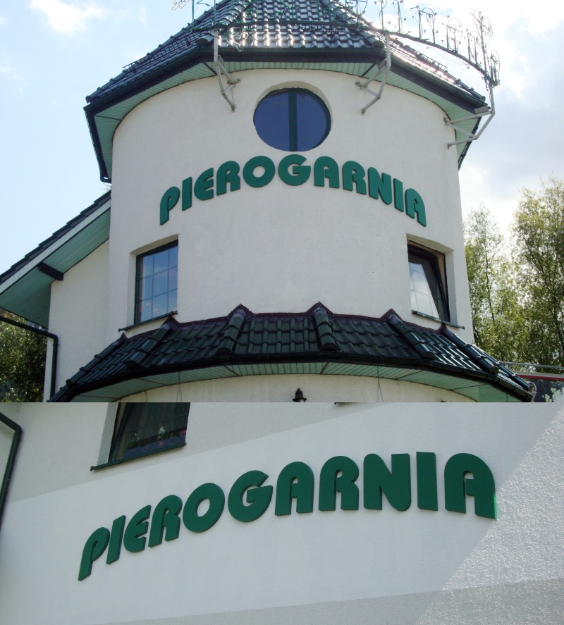 Szyld reklamowy nad wejściem do pierogarnii (produkcja i montaż)