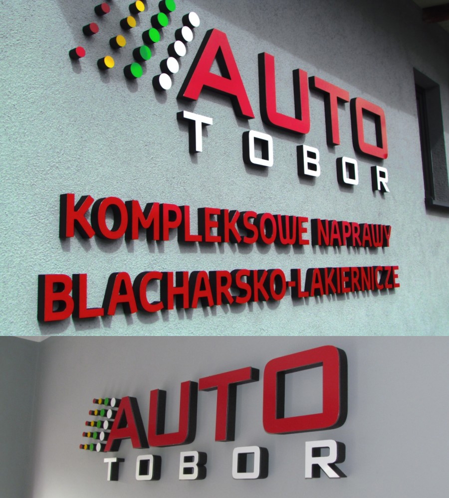 Litery blokowe 3D na elewację budynku i do wnętrza dla blacharza samochodowego