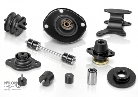 Sesja fotograficzna studyjna produktowa kompozycyjna (aranżacyjna) komponentów gumowo-metalowych, Piastów