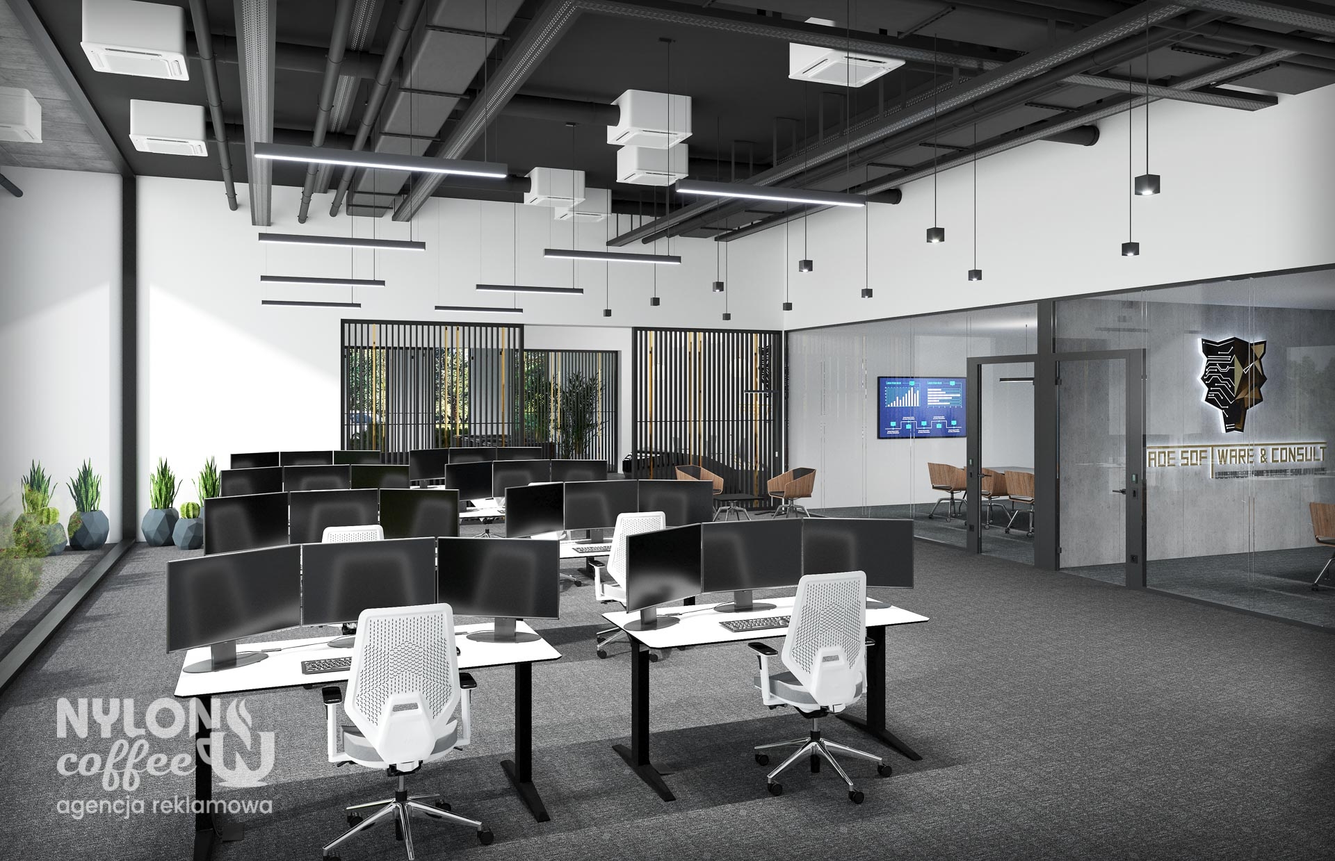 Prezentacja multimedialna prezentująca hale produkcyjne, Kornice