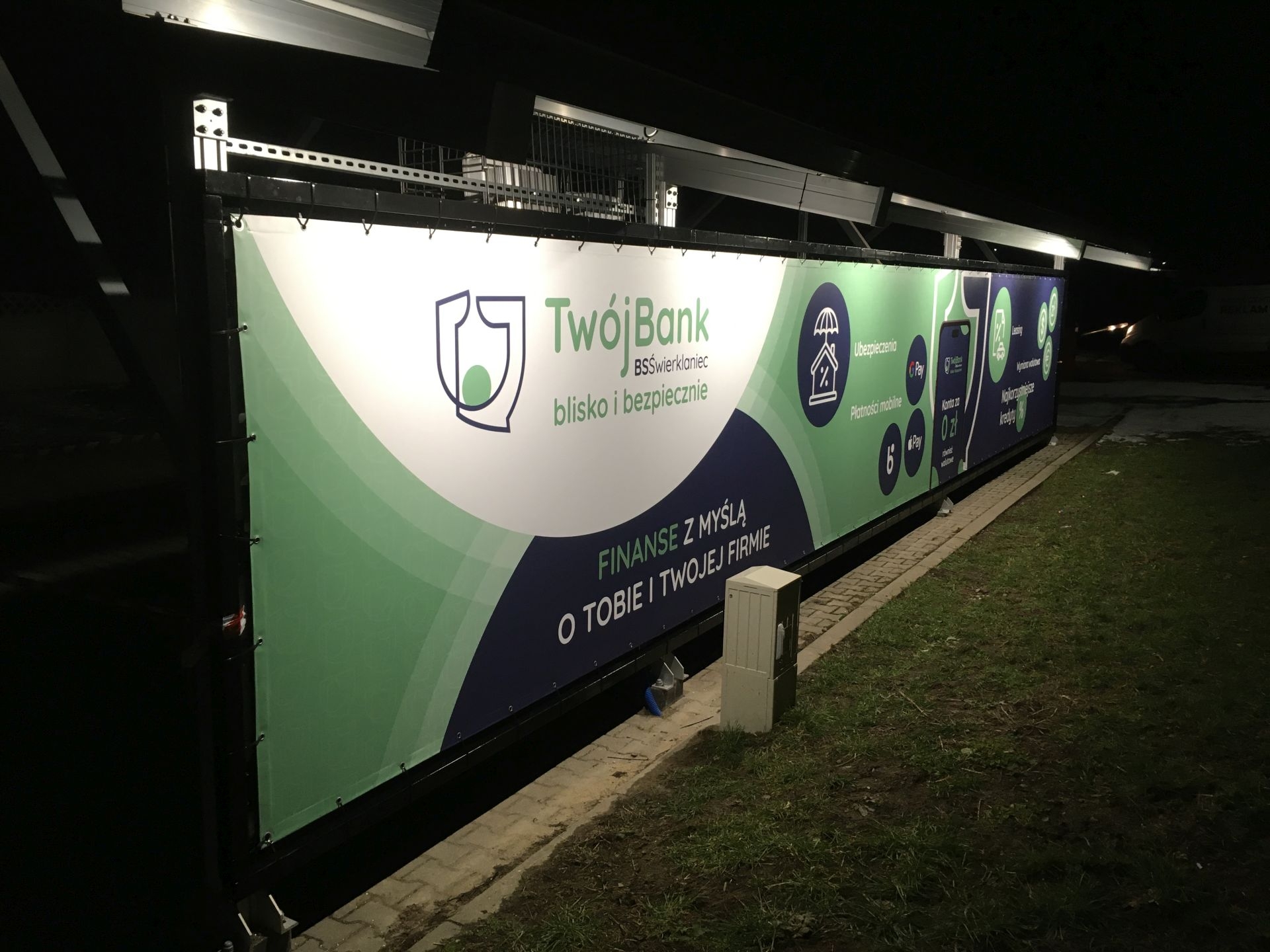 Bank Spółdzielczy - baner na wiacie parkingowej z oswietaczami LED