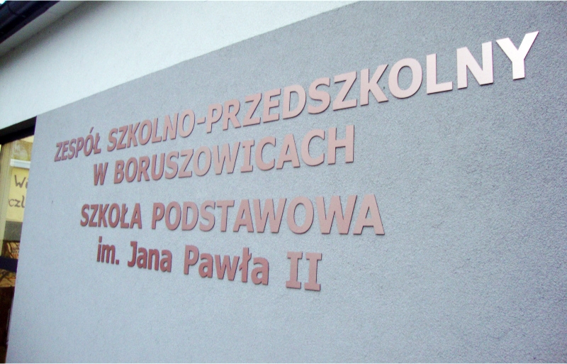 Produkcja i montaż na elewacji liter płaskich z dibondu dla szkoły