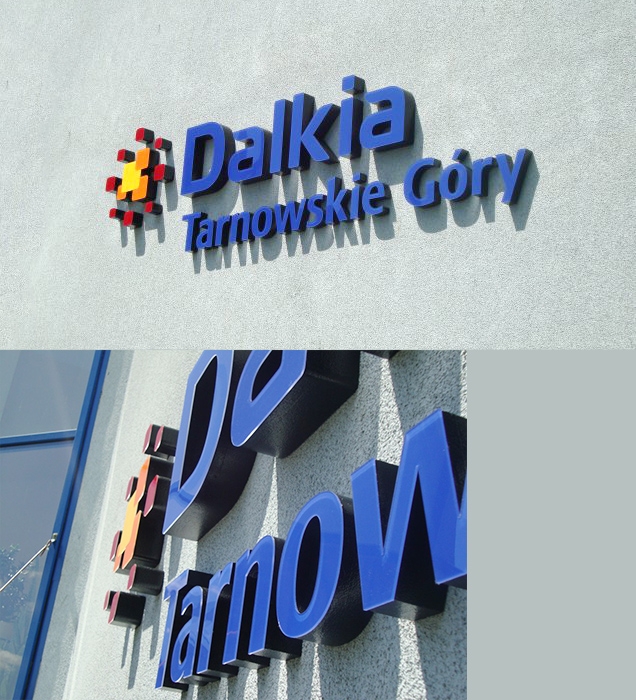Logo przestrzenne 3D ze styroduru z licem (produkcja i montaż napisów na elewacji)